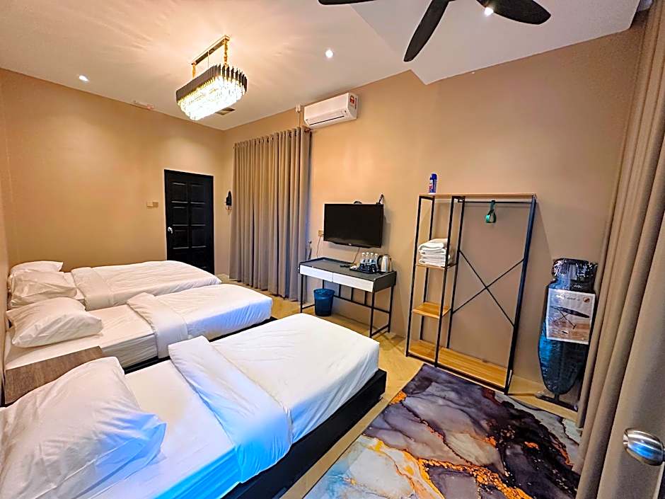 The spacious family room provides air conditioning, a seating area, as well as a private bathroom featuring a bath and a shower. The unit offers 3 beds.
